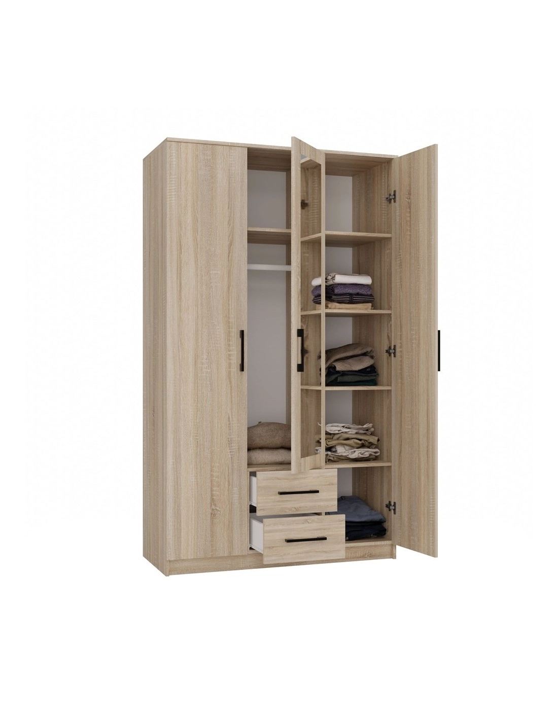 Szafa Romana RON-120L to idealny wybór dla osób szukających stylowego, a zarazem praktycznego rozwiązania do przechowywania odzieży. Dzięki pojemnemu wnętrzu, które zawiera zarówno drążek na wieszaki, jak i pojemne półki, świetnie sprawdzi się w każdej sypialni, niezależnie od dostępnej przestrzeni.