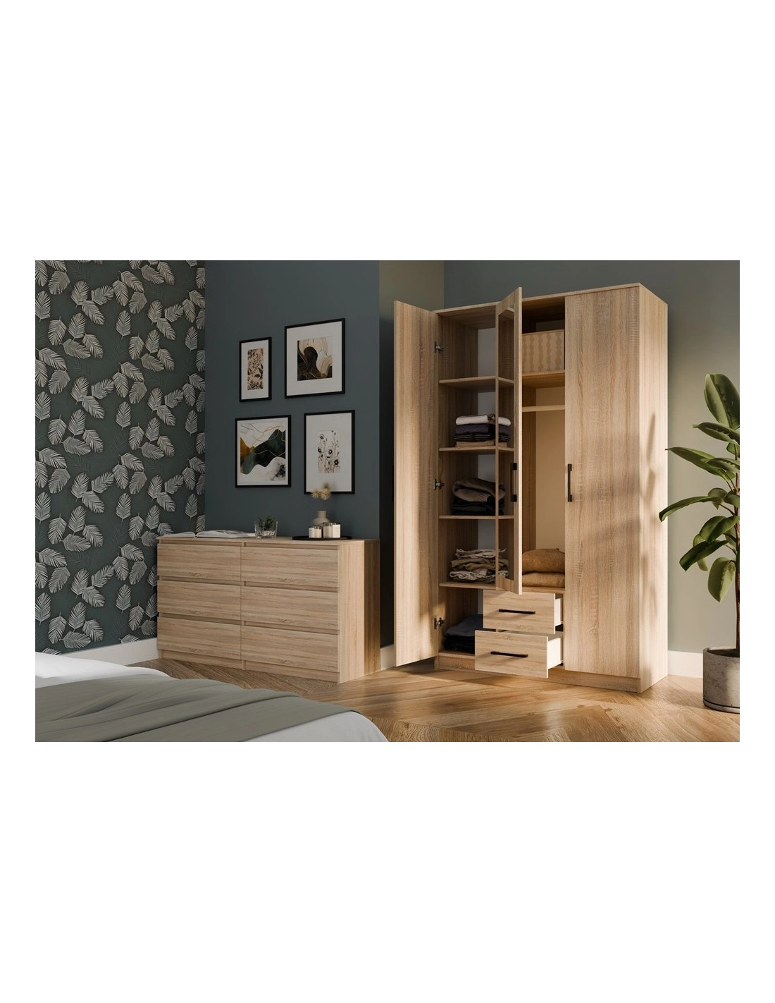 - Stylowy wygląd: W kolorze dąb sonoma, szafa doskonale wkomponuje się w nowoczesne wnętrza.