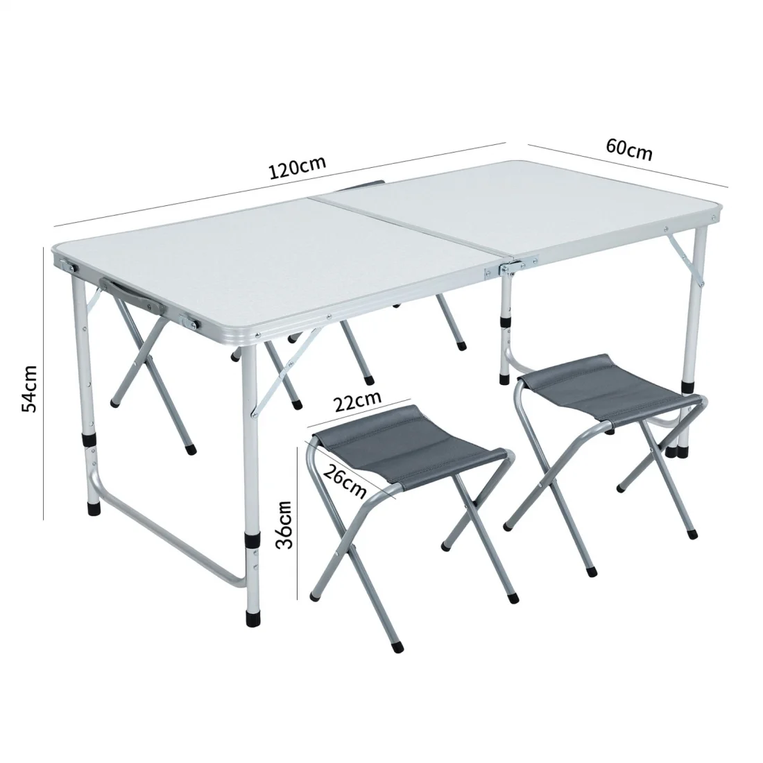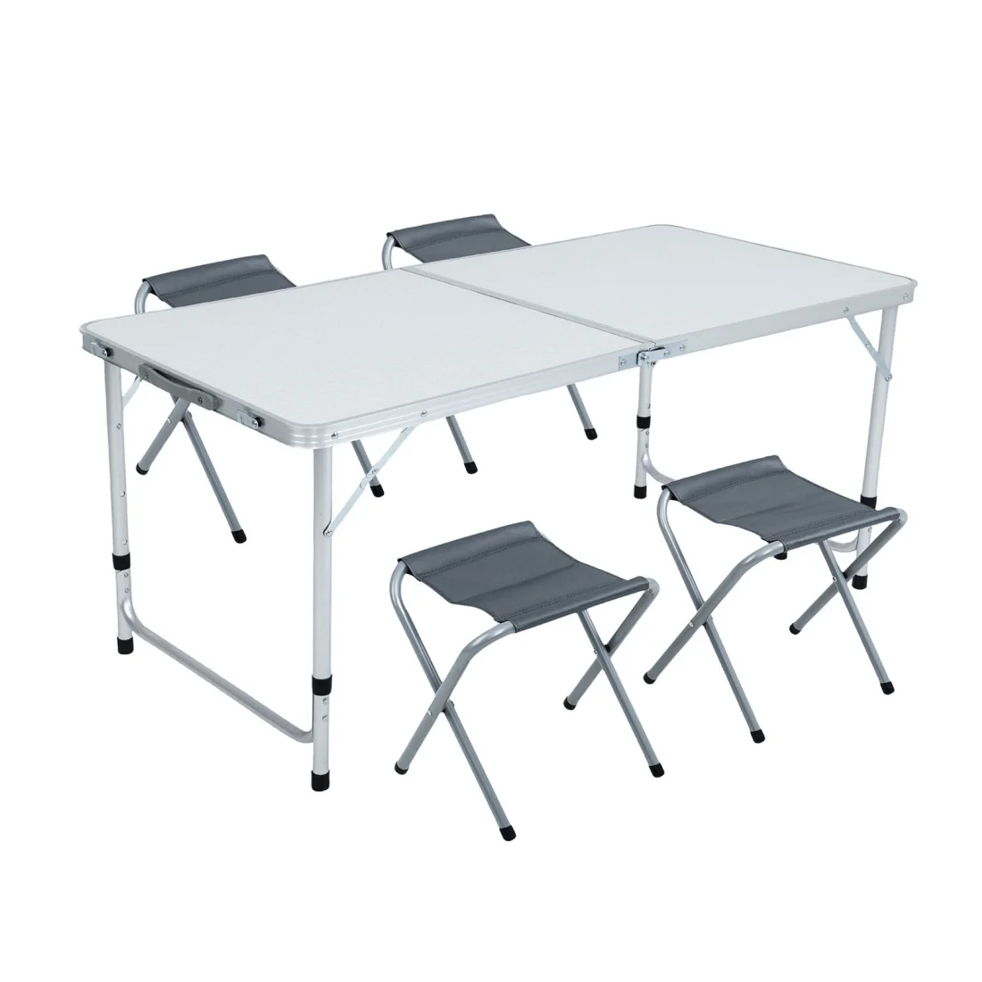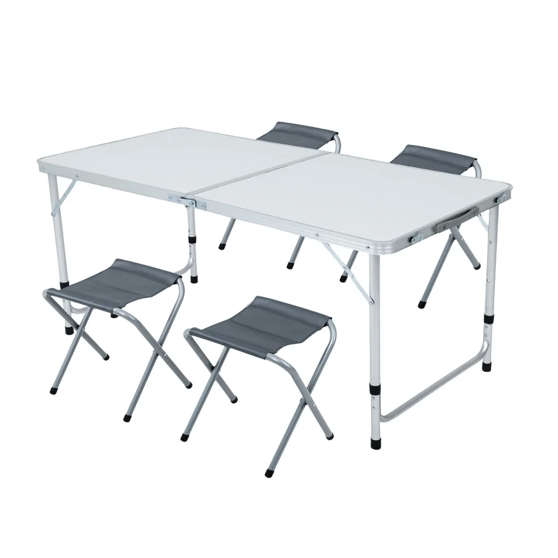 Zestaw turystyczny AGIS – stół prostokątny z aluminium + 4 krzesła, łatwy montaż, lekki, do ogrodu, na kemping