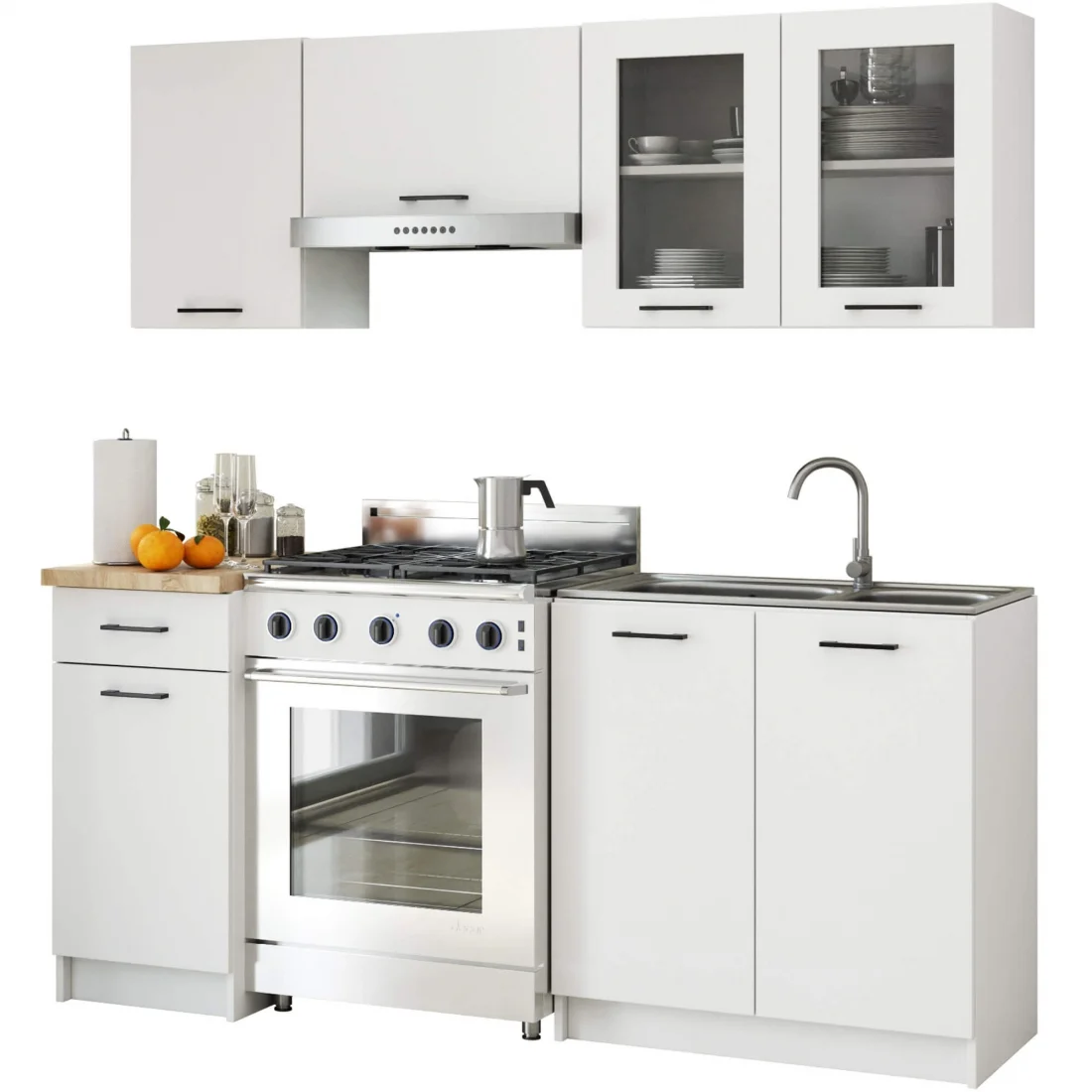Meble kuchenne OLIWIA – zestaw szafek kuchennych z witryną i blatem, system do małej kuchni 1.8m