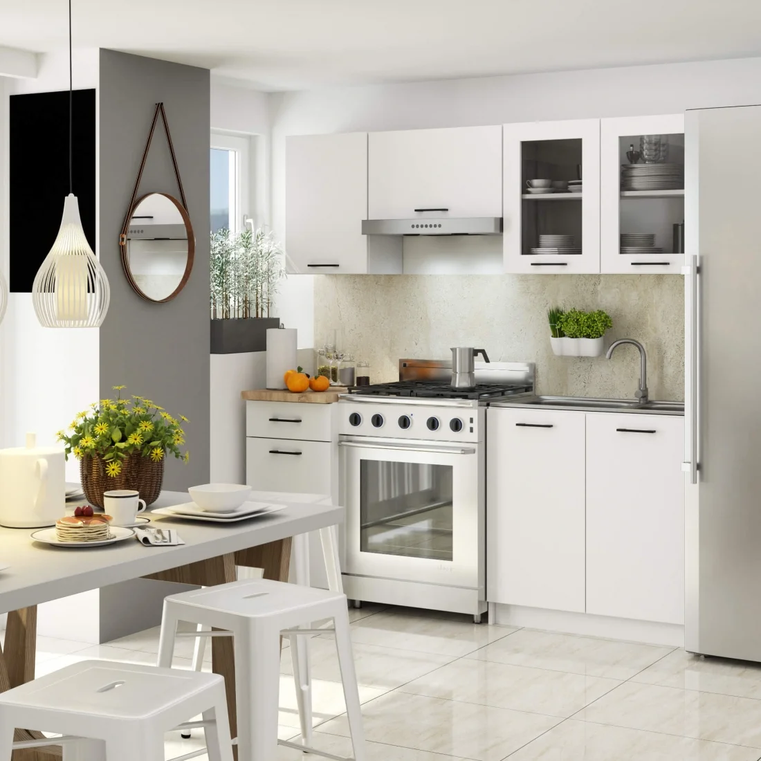 Meble kuchenne Oliwia to idealne rozwiązanie dla osób urządzających niewielką kuchnię. System szafek kuchennych z blatem i witryną został zaprojektowany z myślą o maksymalnej funkcjonalności w małych pomieszczeniach. Prosty, a zarazem efektowny design sprawia, że zestaw doskonale sprawdzi się zarówno w nowoczesnych, jak i klasycznych aranżacjach.