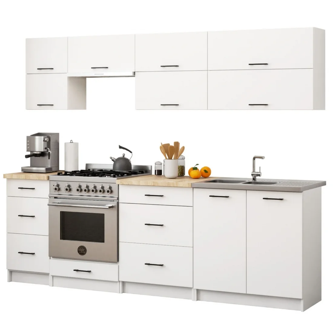 - Trzy pojemne szuflady na różne akcesoria kuchenne