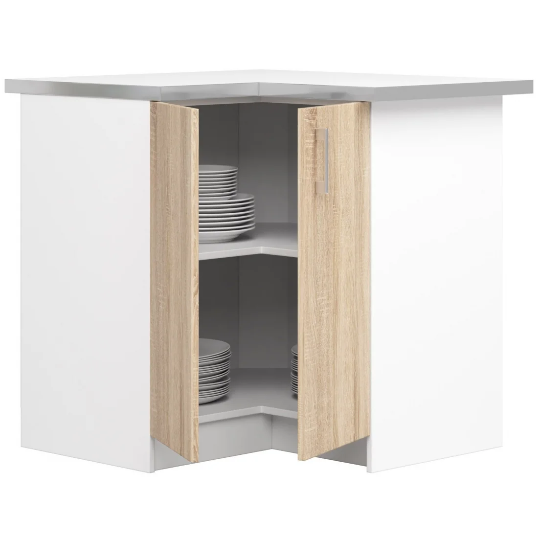 Narożna szafka kuchenna S90/90N LIMA to praktyczne rozwiązanie, które pozwala maksymalnie wykorzystać miejsce w rogu kuchni. Dzięki przemyślanej konstrukcji i dużej pojemności, szafka doskonale sprawdzi się zarówno w małych, jak i przestronnych kuchniach, umożliwiając przechowywanie naczyń, artykułów spożywczych oraz środków czystości.
