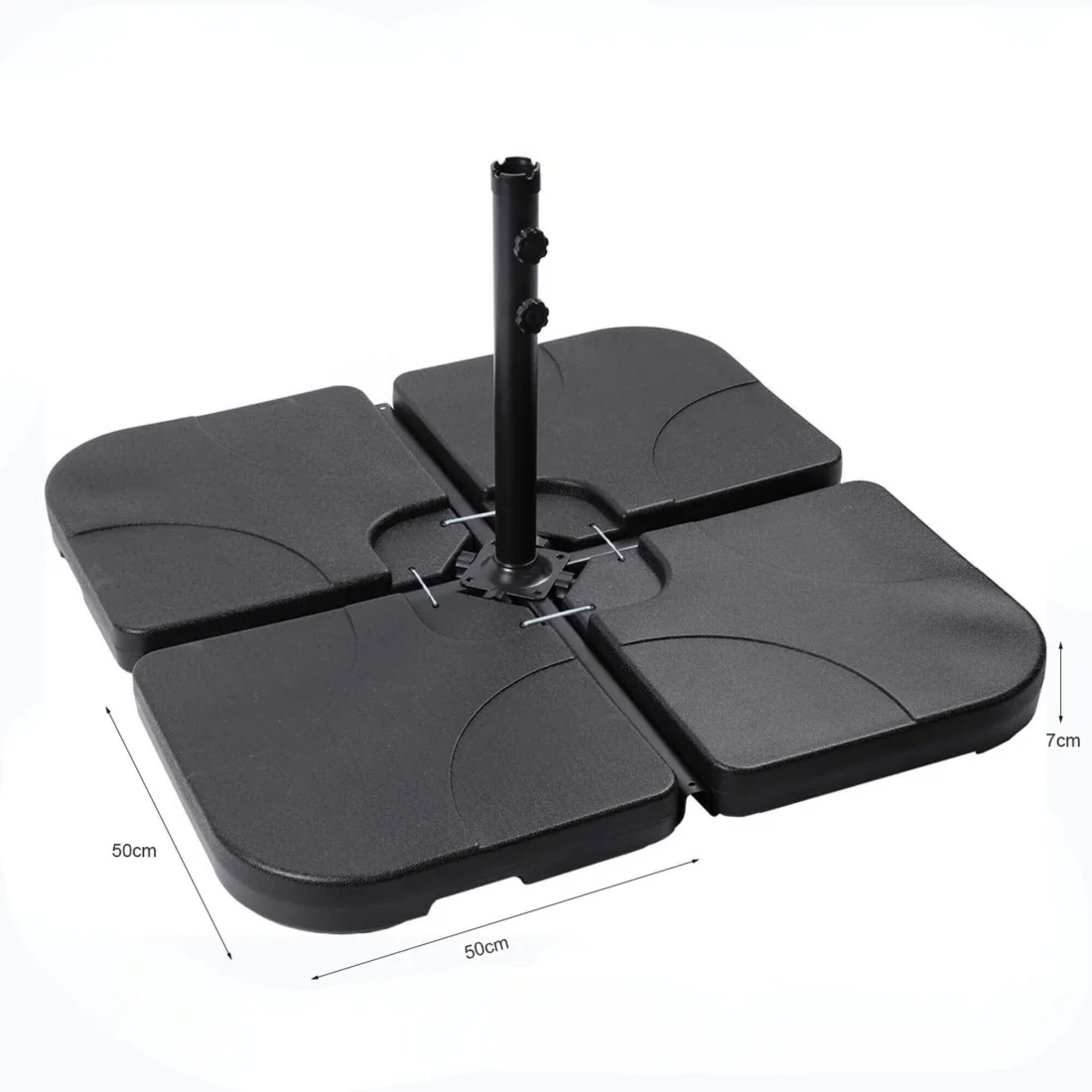 - Podstawa może być wypełniona piaskiem lub wodą, co pozwala uzyskać wagę do 60–80 kg i zapewnia maksymalną stabilność nawet przy silnym wietrze.