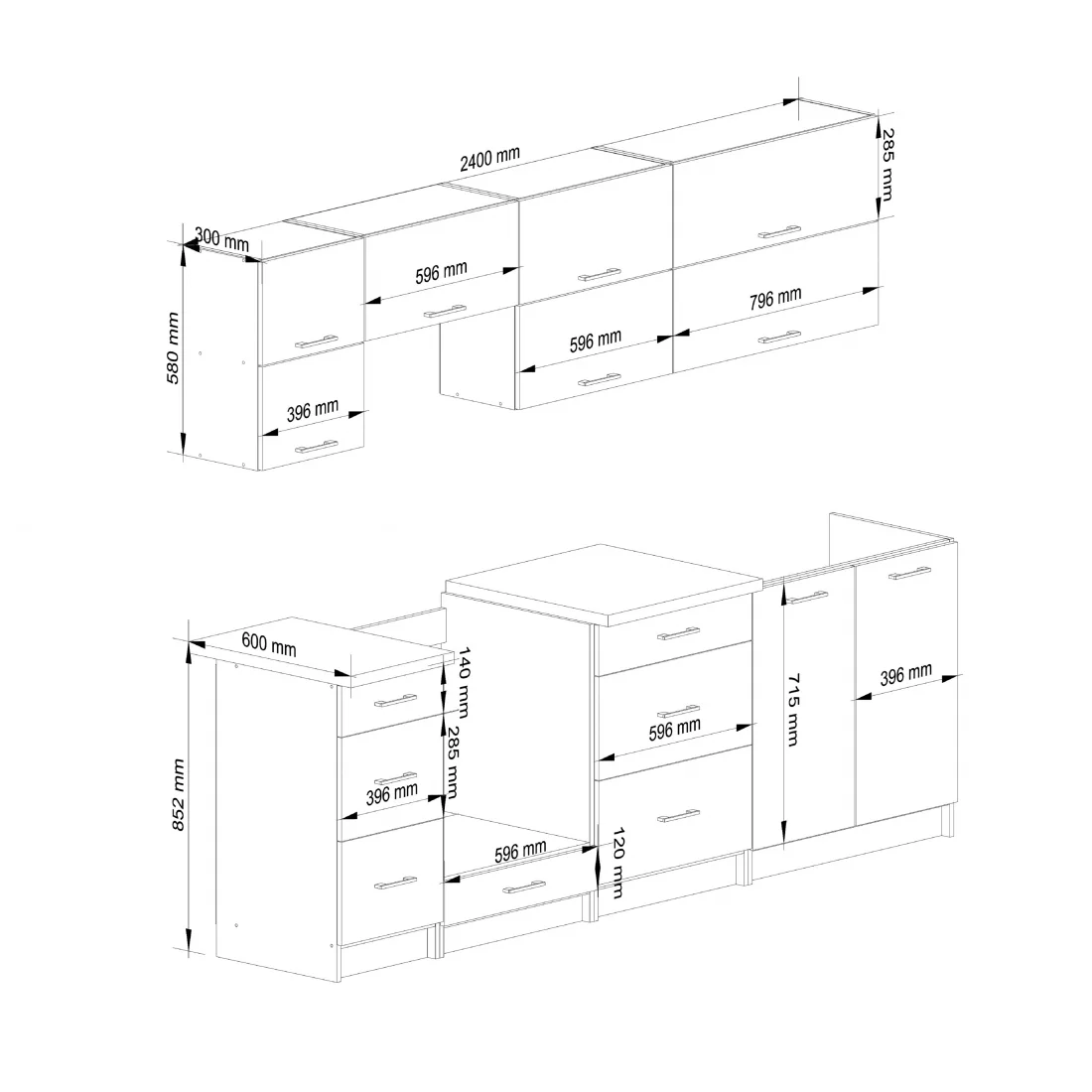 Meble kuchenne Oliwia G2 2.4M zestaw szafek stojących i wiszących z blatem 60 cm, system modułowy, do małej i dużej kuchni