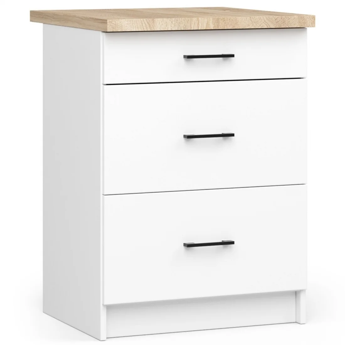 - Szafki stojące: pod zlewozmywak S80ZL (80x82x46 cm), S60 z 3 szufladami (60x82/85x46 cm), S40 z 3 szufladami (40x82/85x46 cm), S60 pod piekarnik (80x82x55 cm)