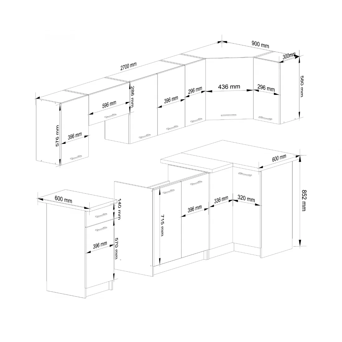 Meble kuchenne OLIWIA 3M – zestaw szafek do kuchni, system narożny
