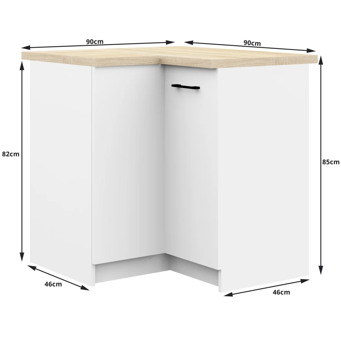 - S90/90N: długość 90/90 cm, wysokość 82 cm (z blatem 85 cm), głębokość 46 cm