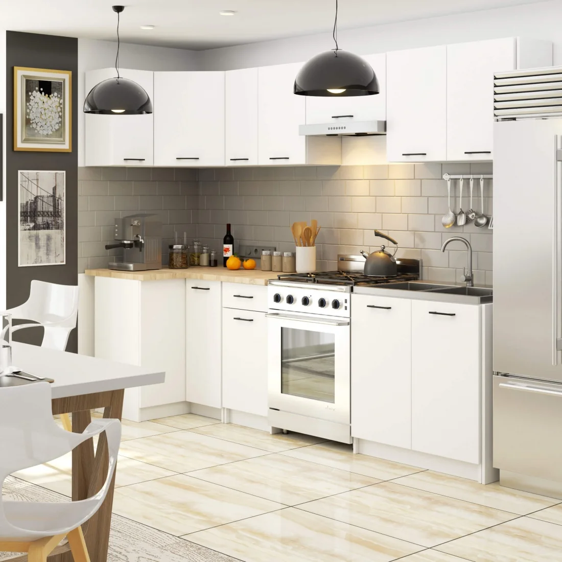 Uwaga: Cena dotyczy wyłącznie szafek kuchennych oraz blatu. Elementy dekoracyjne nie są częścią zestawu.