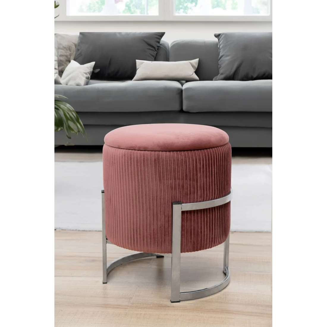 Pufa PORTO – welurowa pufa otwierana z pojemnikiem i metalową podstawą