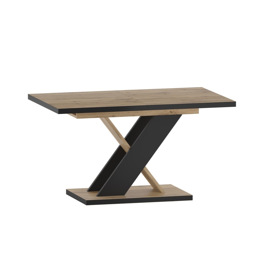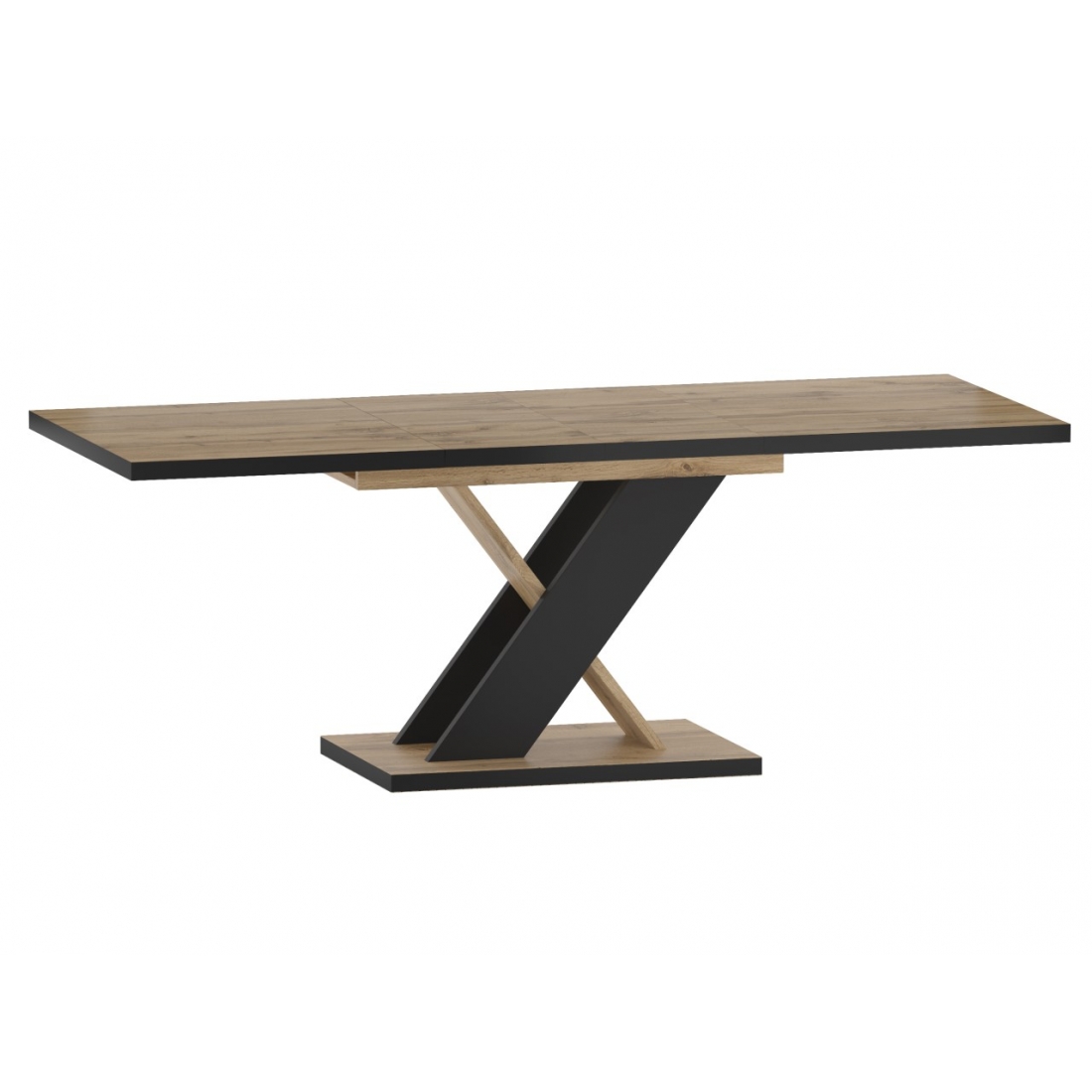 Stół rozkładany NST016 wyposażony w blat z płyty wiórowej laminowanej o długości 138 cm, który po rozłożeniu osiąga 208 cm. Konstrukcja oparta na podstawie w kształcie litery X, wykonanej z płyty wiórowej laminowanej.