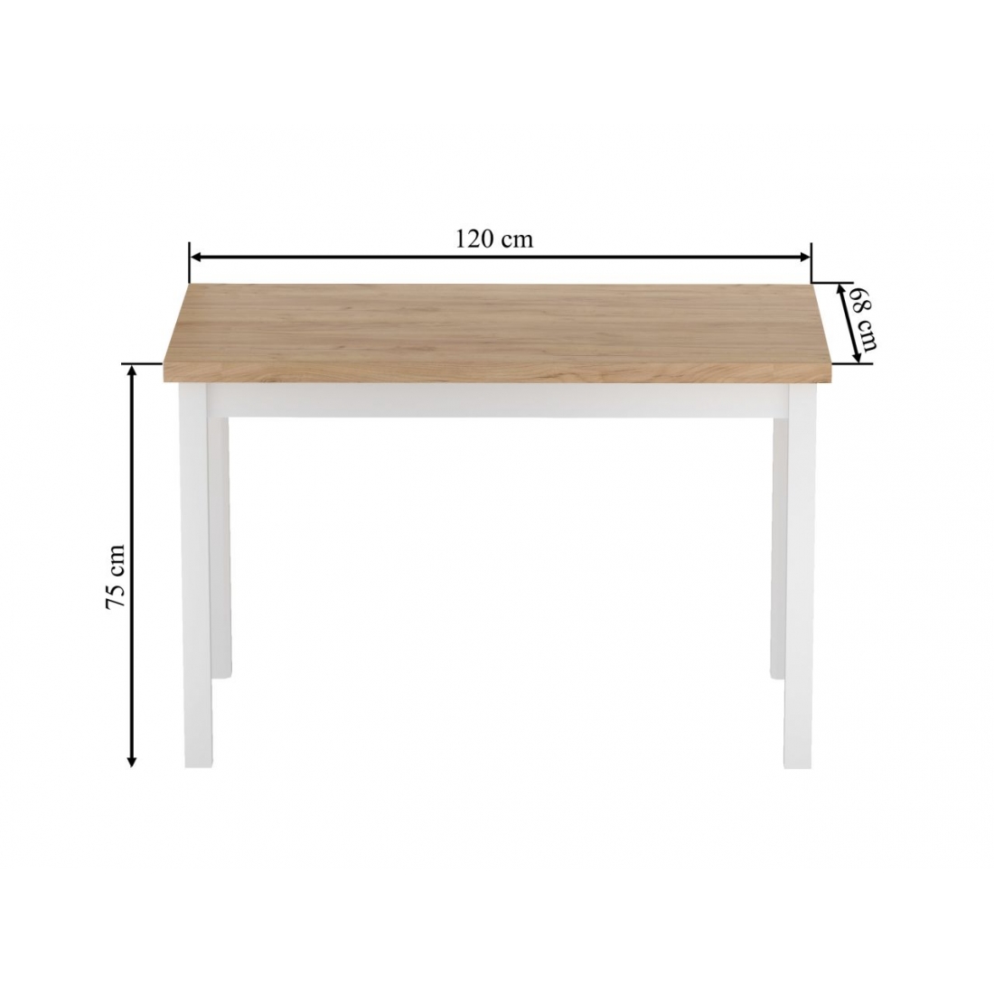 Stół prostokątny NST021 przeznaczony jest do użytku w kuchni lub jadalni. Posiada blat wykonany z płyty wiórowej laminowanej oraz nogi z MDF.