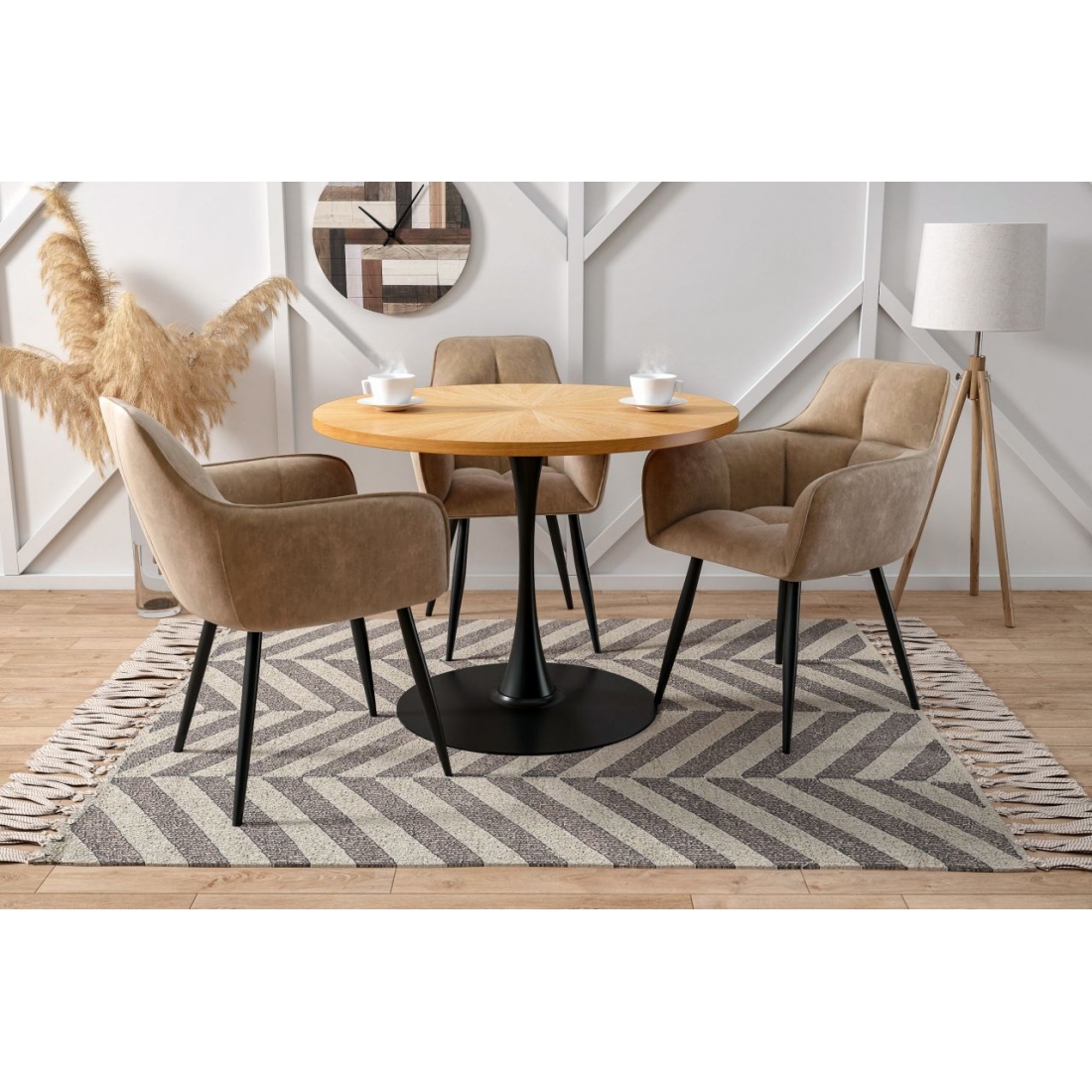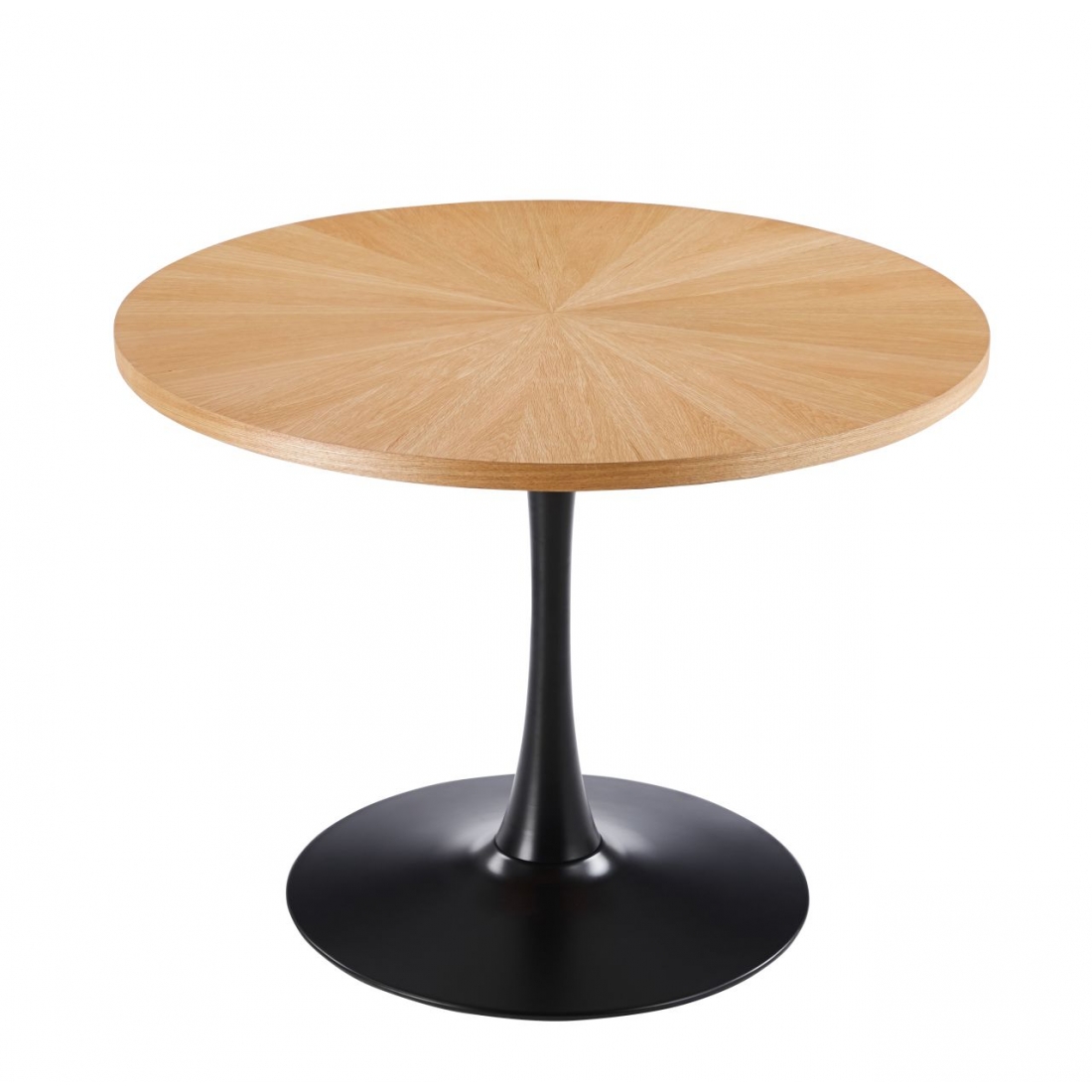 Stół okrągły NST031 o średnicy 100 cm wykonany jest z MDF pokrytego laminatem dekoracyjnym. Stabilna podstawa o średnicy 65 cm została wykonana z metalu malowanego proszkowo.