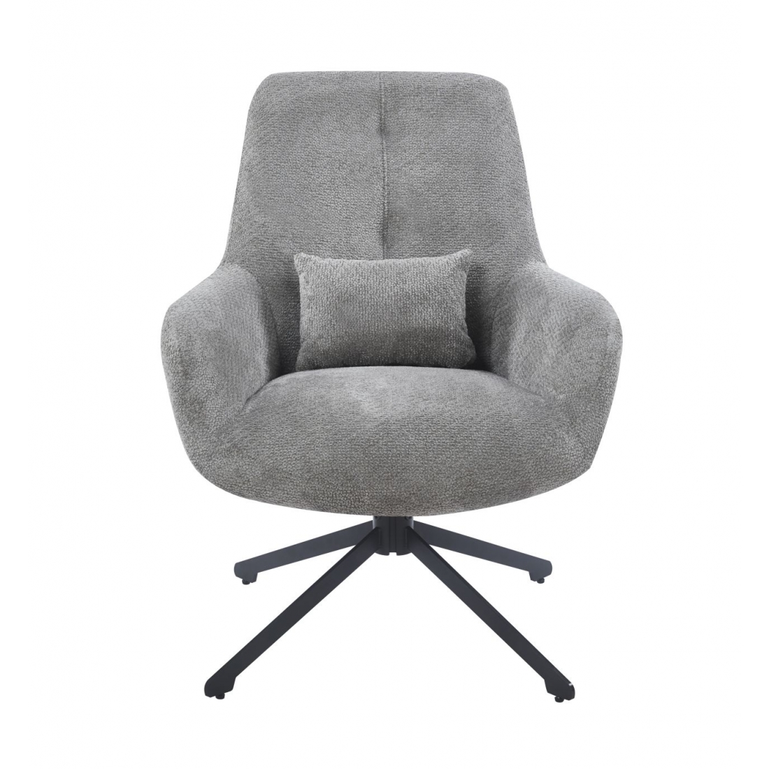 Fotel NFT003 został wyposażony w siedzisko z funkcją obrotu 360 stopni. Solidny stelaż wykonany z metalu malowanego proszkowo zapewnia stabilność, a tapicerka z tkaniny Egon podnosi komfort użytkowania. W zestawie znajduje się dopasowana poduszka.