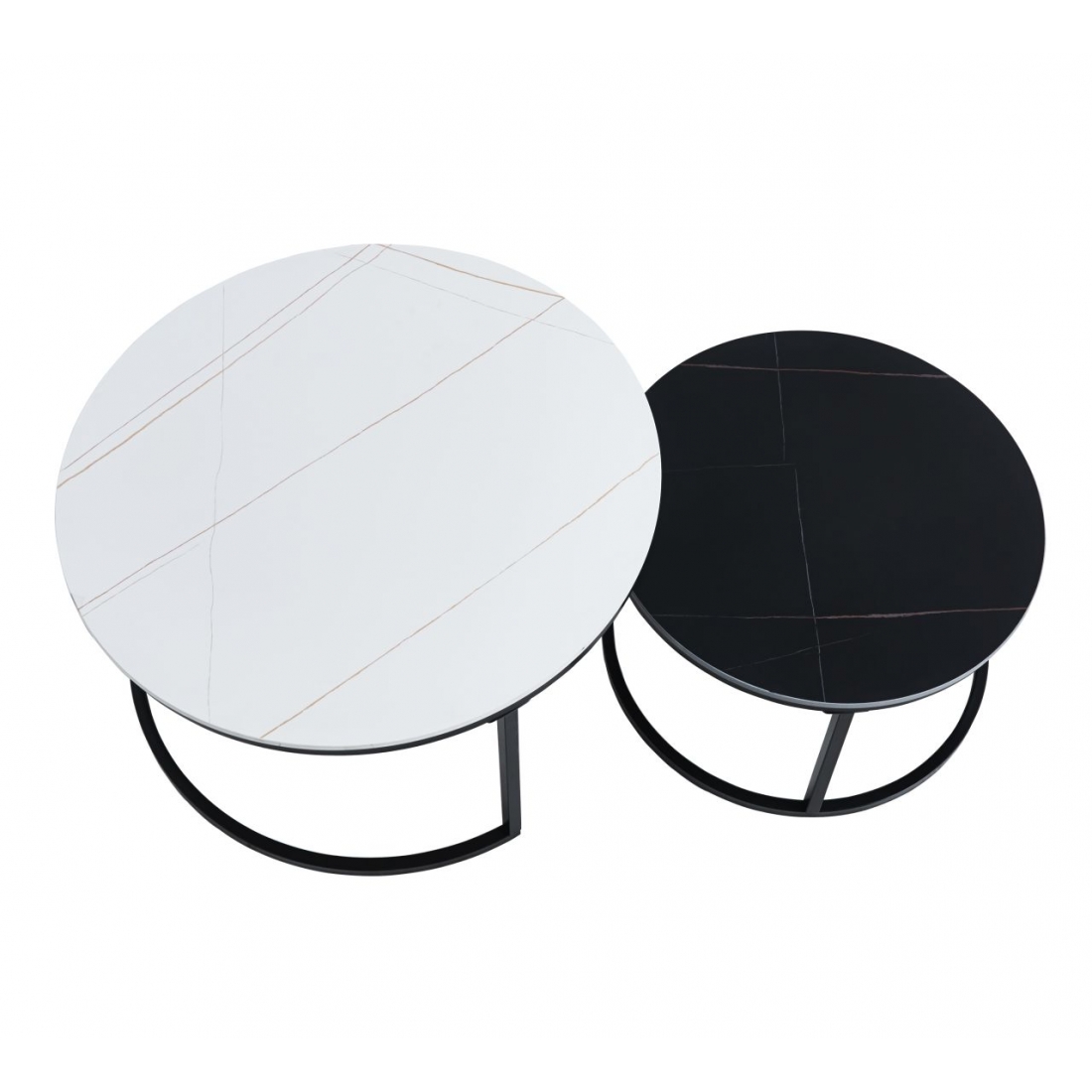 Zestaw ław NLW005 składa się z dwóch stolików o różnej wielkości. Blaty wykonane są z ceramiki matowej, a stabilne nogi z metalu malowanego proszkowo.