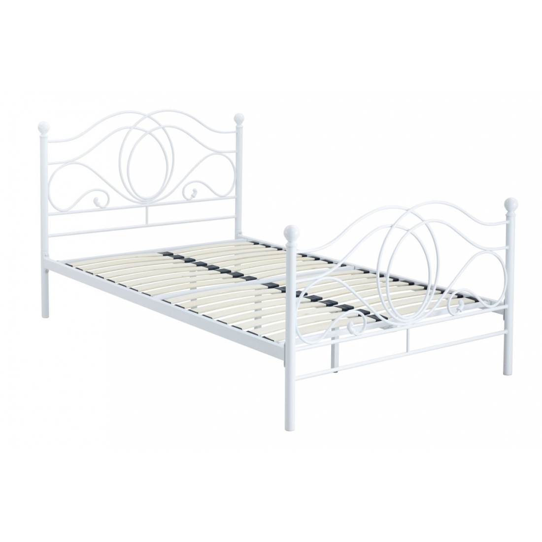 Łóżko metalowe NLZ004 o powierzchni spania 120x200 cm wyposażone jest w stelaż z listwami sprężynującymi ze sklejki. Posiada solidną konstrukcję z metalu malowanego proszkowo oraz wysokie wezgłowie.