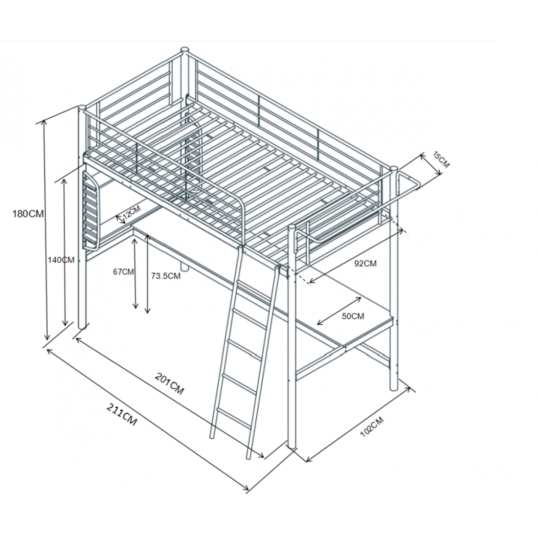 Łóżko piętrowe NLZ007 wykonane z metalu malowanego proszkowo wyposażone jest w blat biurka z płyty MDF. Powierzchnia spania 90x200 cm sprawia, że produkt łączy funkcję spania z praktycznym miejscem do nauki lub pracy.