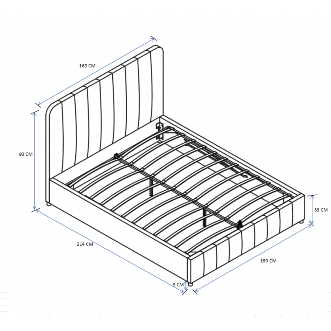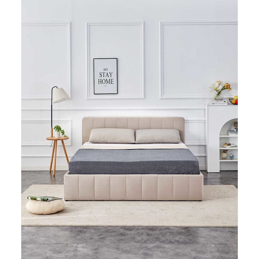 Łóżko tapicerowane NLZ010 przeznaczone jest na materac o powierzchni spania 160x200 cm. Wyposażone w stelaż ze sprężynującymi listwami oraz pojemnik na pościel otwierany od frontu za pomocą siłowników gazowych.