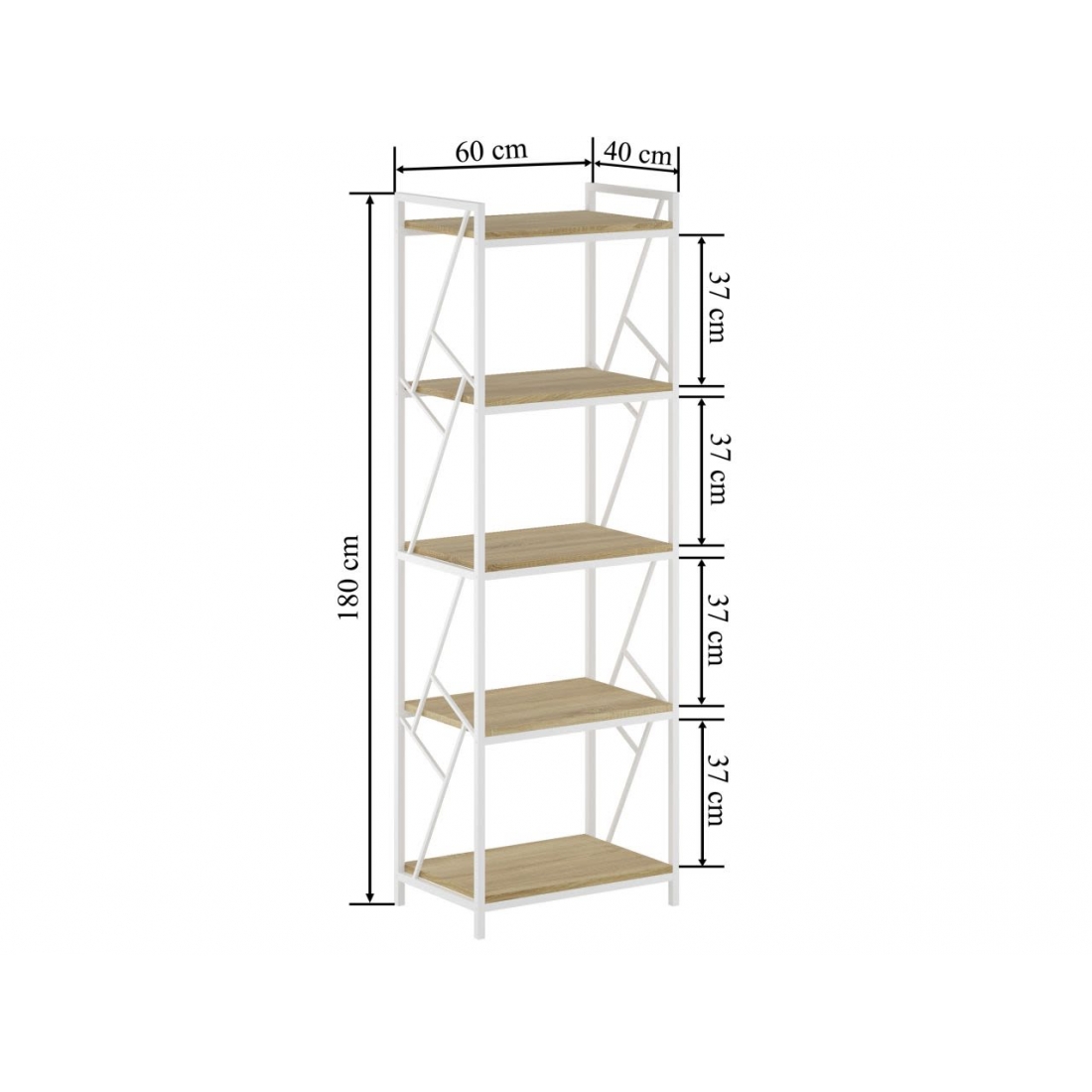 Regał NRG006 to praktyczny mebel do przechowywania w domu lub biurze. Konstrukcja łączy stabilny stelaż metalowy z laminowanymi półkami drewnianymi, co zapewnia wytrzymałość i funkcjonalność.
