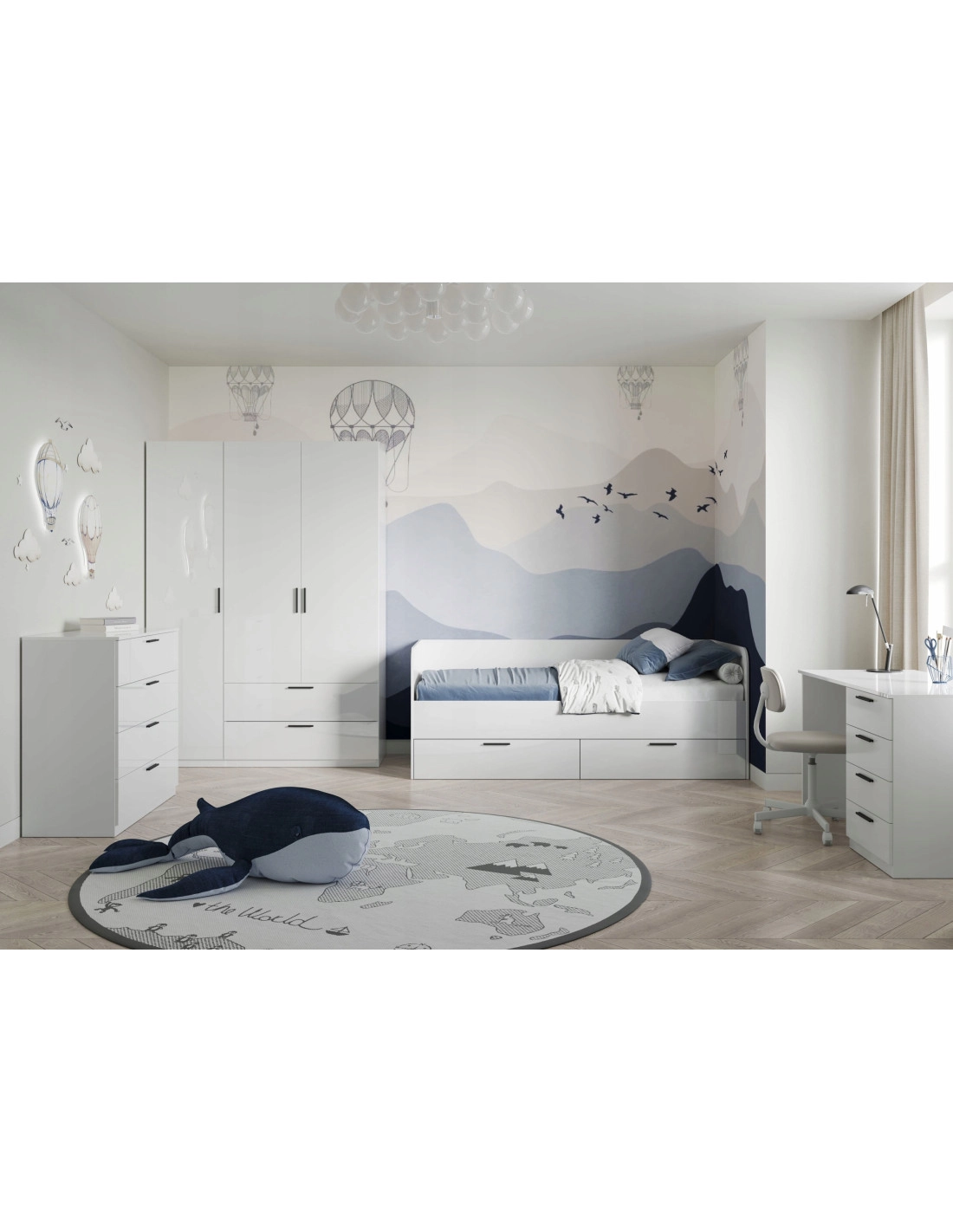 Łóżko Happy 90x200 z szufladami to doskonałe połączenie funkcjonalności i estetyki, które idealnie wpasuje się w przestrzeń młodzieżowego pokoju.