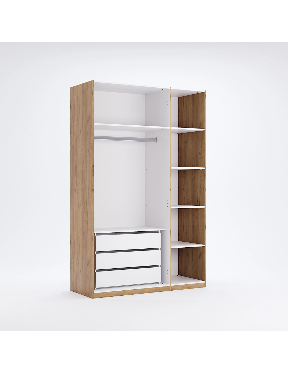 - Przestronne półki, które umożliwiają wygodne przechowywanie różnych przedmiotów – od odzieży, przez pościel, aż po akcesoria. Dzięki różnorodności ich rozłożenia, łatwo dopasujesz przestrzeń do własnych potrzeb.
