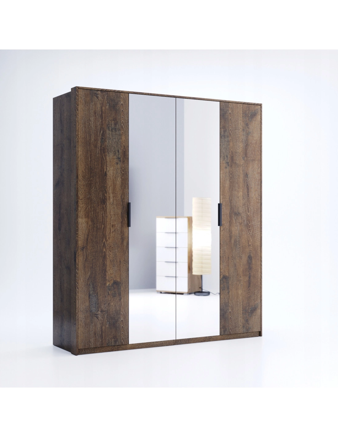 Szafa Quadro to połączenie nowoczesnej funkcjonalności z minimalistycznym designem, idealna dla osób, które cenią sobie styl i praktyczność w swoich wnętrzach. Jej uniwersalny, loftowy wygląd i wysokiej jakości materiały sprawiają, że doskonale wpisuje się w trendy wnętrzarskie. Lustro na froncie dodaje szafie elegancji oraz optycznie powiększa przestrzeń.