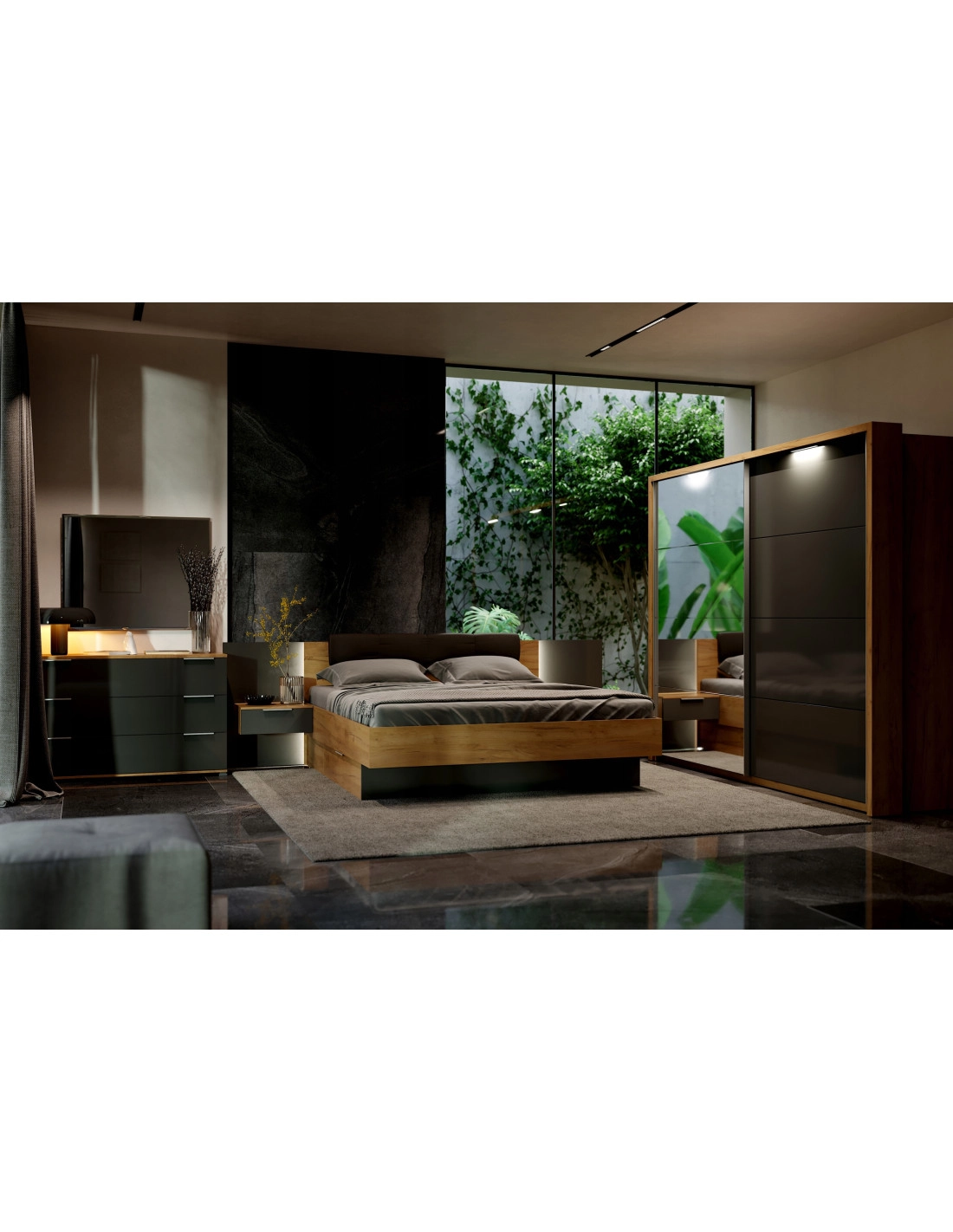 - Oświetlenie LED – Subtelne oświetlenie LED umieszczone za zagłówkiem dodaje wnętrzu nowoczesnego klimatu i tworzy przyjemną atmosferę.