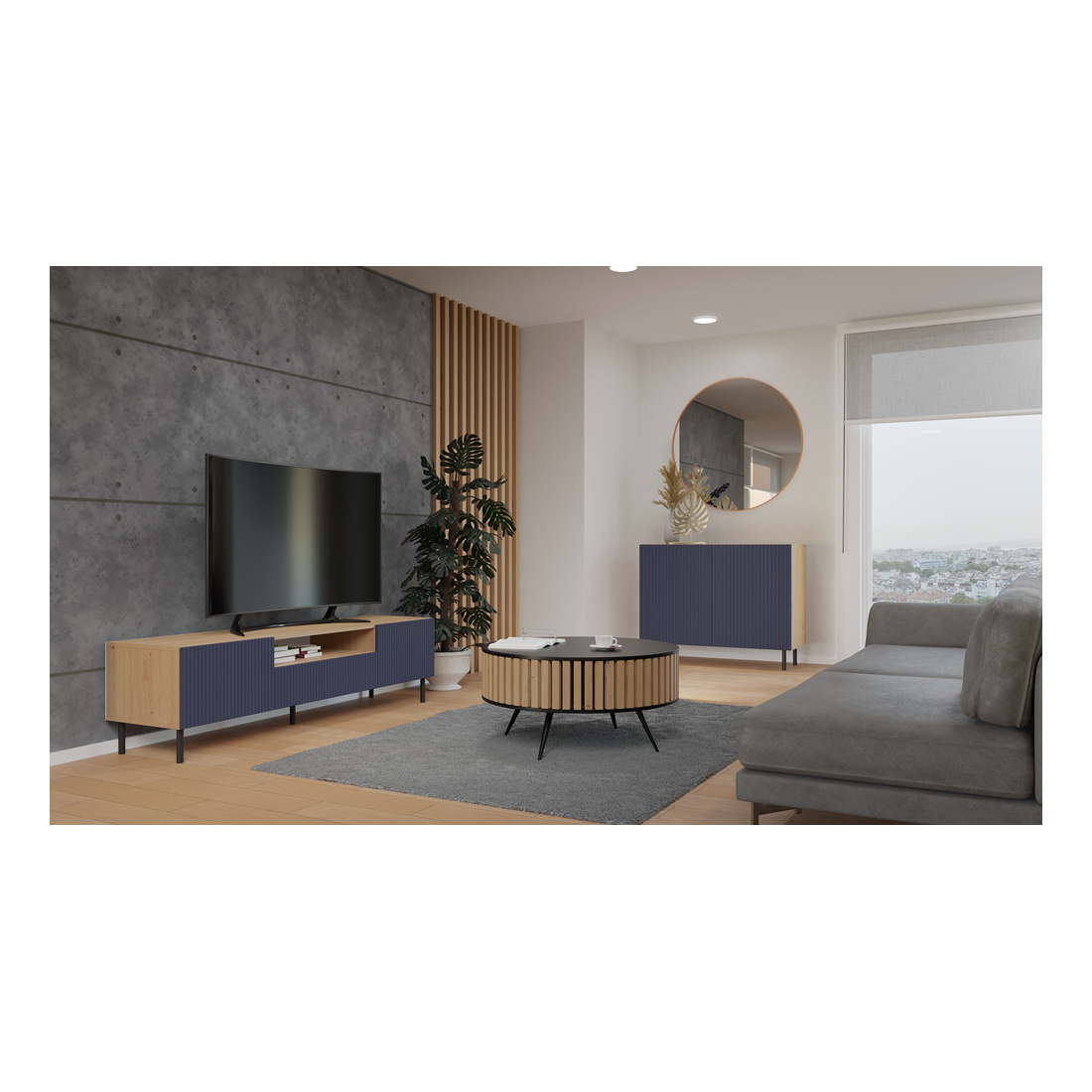 Ten nowoczesny stolik RTV łączy w sobie funkcjonalność oraz elegancję, będąc idealnym dodatkiem do salonu.