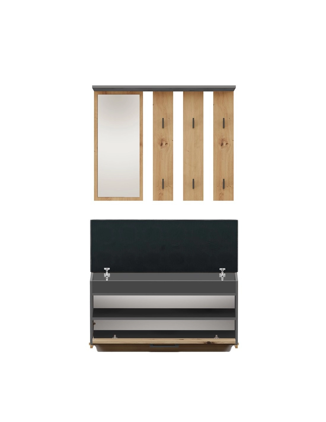 - Szafka na obuwie z wygodnym siedziskiem i schowkiem.