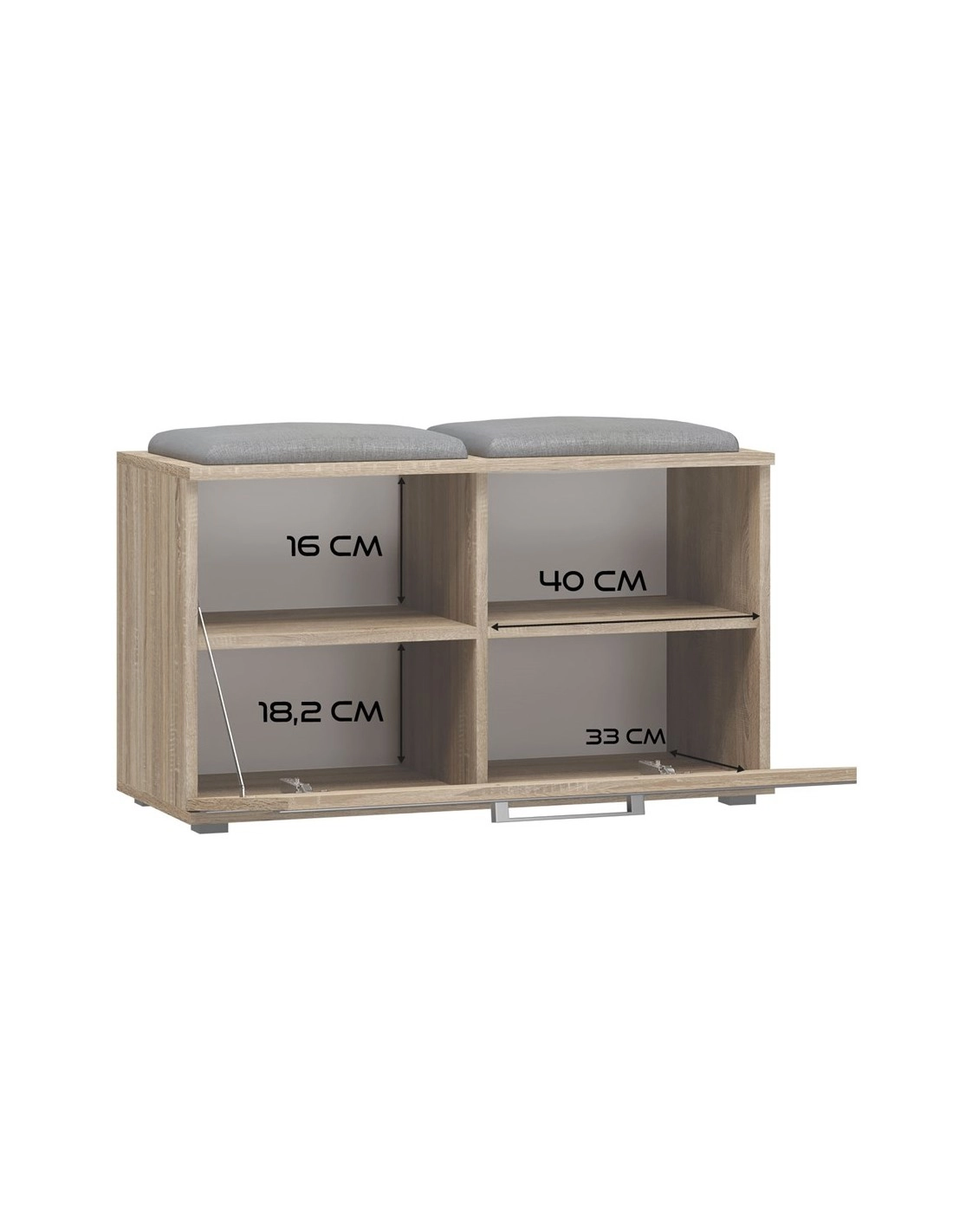 Szafka na obuwie z siedziskiem OPAL to funkcjonalne i estetyczne rozwiązanie do każdego przedpokoju. Dzięki połączeniu schowka na buty z wygodnym siedziskiem, mebel spełnia zarówno praktyczne, jak i dekoracyjne funkcje. Wykonana z wytrzymałej płyty laminowanej o grubości 16 mm, zapewnia trwałość oraz elegancki wygląd, który idealnie wpisuje się w nowoczesne wnętrza.