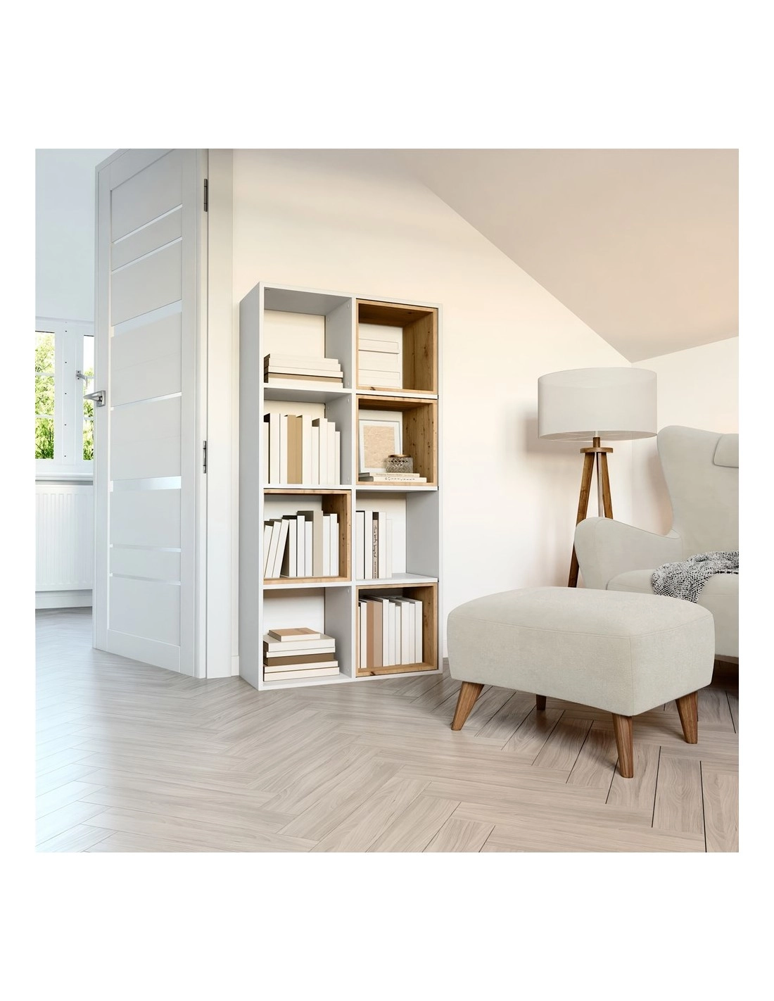 - Nowoczesny design: biały mat w połączeniu z prostą konstrukcją nadaje regałowi elegancki wygląd.