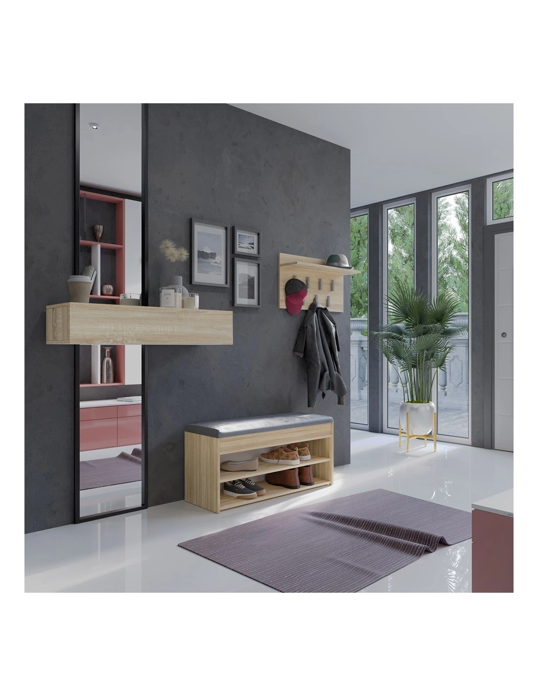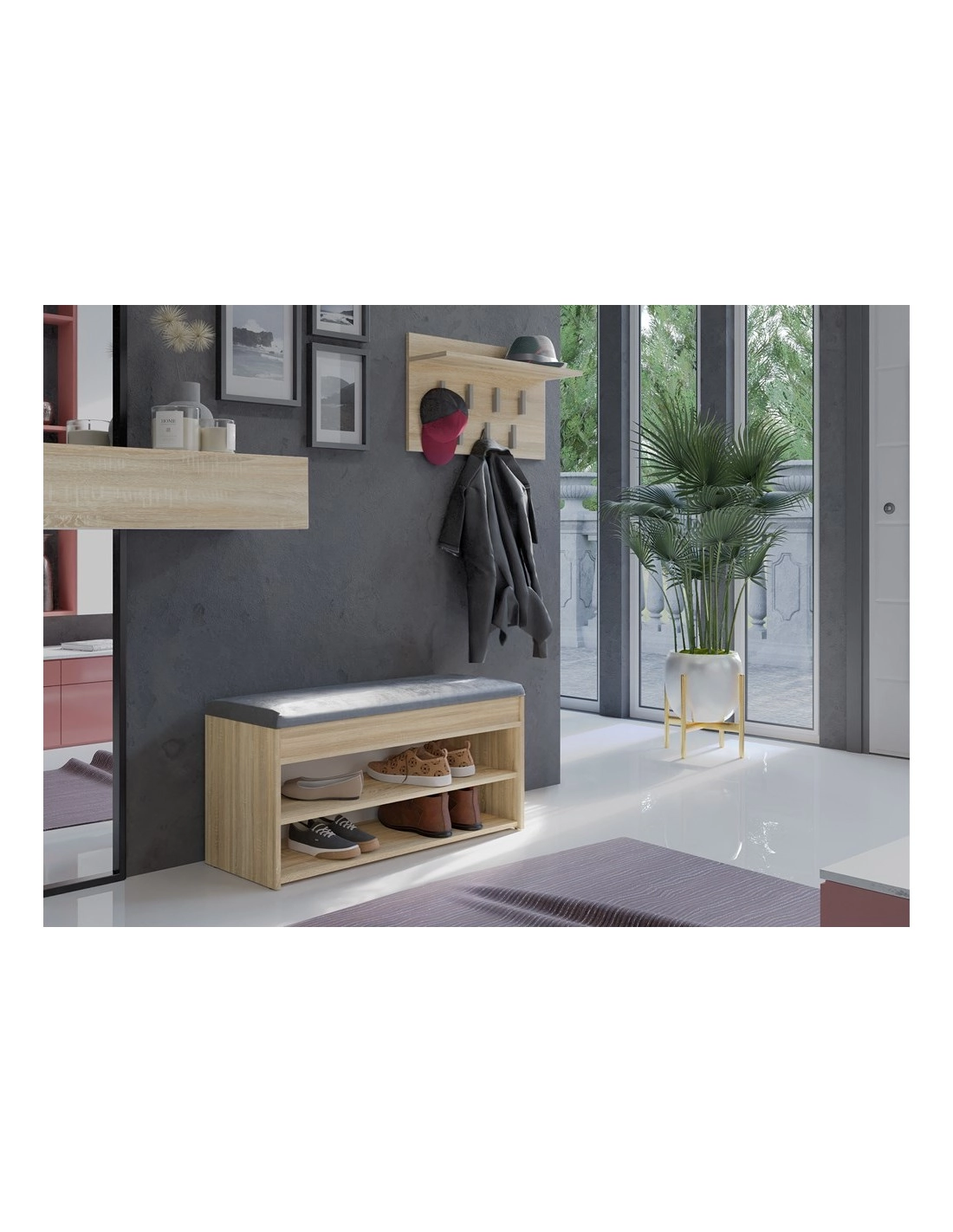 Szafka PARMA 2P to funkcjonalne i stylowe rozwiązanie do przedpokoju, które łączy w sobie wygodne siedzisko, przestronny schowek na drobne akcesoria oraz półki na buty. Dzięki niej uporządkujesz przestrzeń przy wejściu, nadając jej elegancki wygląd.